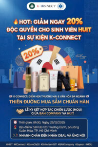 Tin chấn động cho HUITers đây! Cơ hội trải nghiệm và mua sắm các sản phẩm chuẩn Hàn Quốc với mức giá “siêu hời” dành riêng cho sinh viên trường Đại học Công Thương TP.HCM.